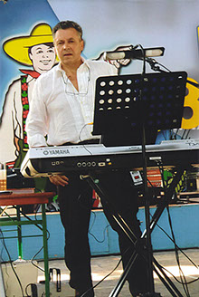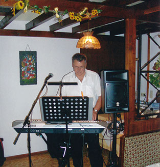 Spielt auf dem Keyboard und Akkordeon